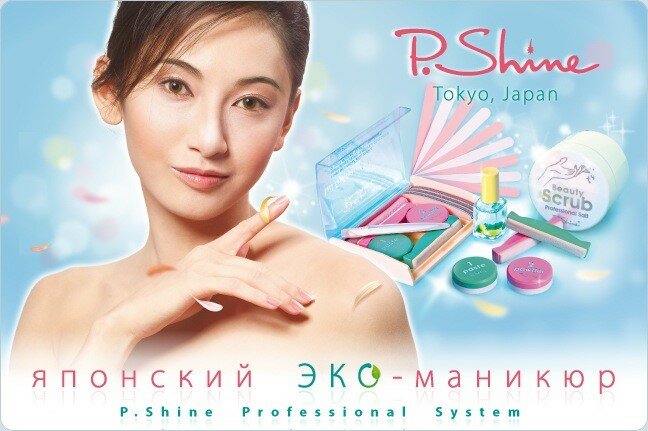 Здоровые и красивые ногти - деталь, но далеко не мелочь. Они становятся неотъемлемой частью имиджа наряду с элегантной одеждой и отполированным до блеска автомобилем. Эко-маникюр и эко-педикюр P.Shine (Япония) - это способ улучшения как внешнего вида, так и здоровья ногтей. Этот вариант ухода предотвращает их высыхание и расслаивание, стимулирует рост. Эко-уход P.Shine - это услуга маникюра и педикюра, радикально отличающаяся от того, к чему мы с Вами привыкли. Благодаря ей появилась возможность сделать ногти здоровыми, сильными и при этом очень красивыми без необходимости наращивания. Долгое время эта технология оставалась доступна только жителям Японии, и лишь в 1973 году P.Shine вышла на рынок США. Сейчас торговая марка P.Shine известна в 27 странах мира.